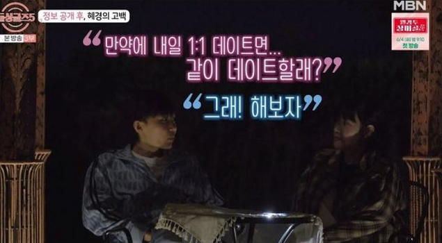 "이성이라기보다 제일 어린 사람으로 봤다. 근데 오늘 베이킹을 하면서 이성이다 라는 생각을 했다. 솔직히 설렜다"며 심규덕에게 호감을 표현한 박혜경은 첫 인상 투표에서도 심규덕을 꼽았음을 언급하며, 둘은 다음 날 1대1 데이트를 약속하게 됩니다.