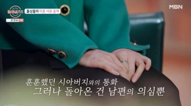 이후 박혜경은 전남편의 의처증 증세를 겪게 되었습니다. 한 번은 친구 부부들과 모인 송년회 자리에서 시아버지로부터 '올해 혜경이를 가족으로 맞이하게 된 게 최고의 행복이다'라는 훈훈한 문자를 받고, 잠시 자리를 비워 시아버지와 통화했던 적이 있었습니다.