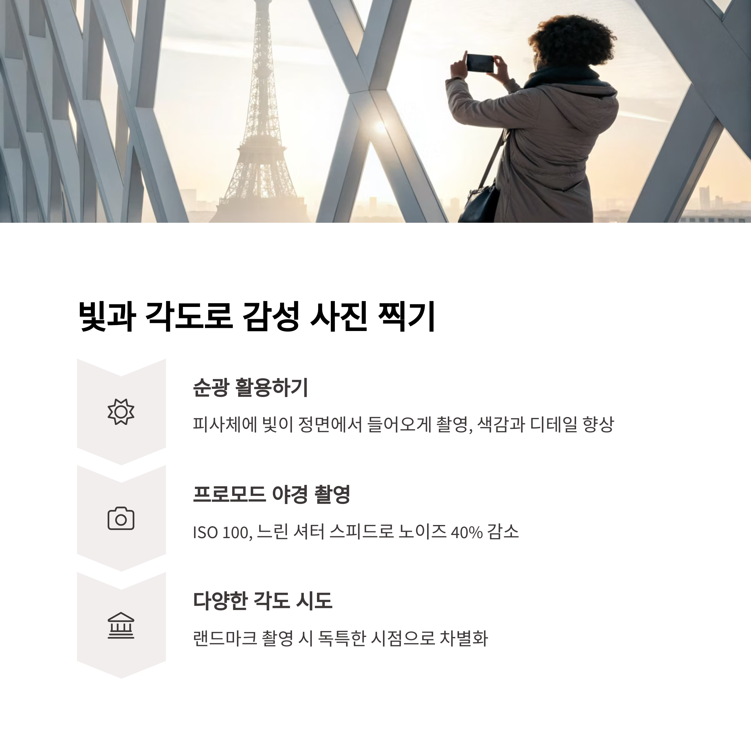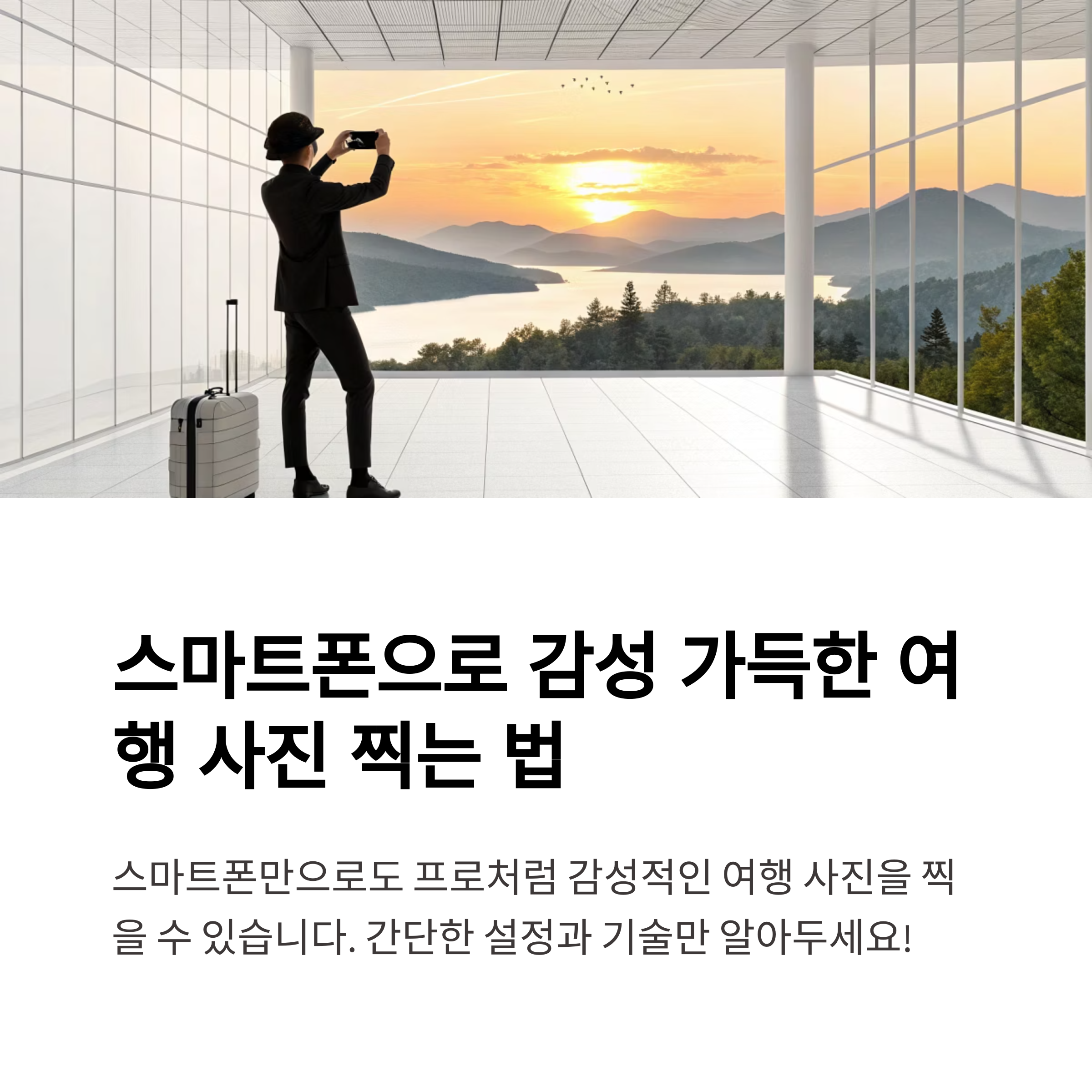 스마트폰 카메라의 발전으로 누구나 감성적인 여행 사진을 촬영할 수 있게 되었습니다.