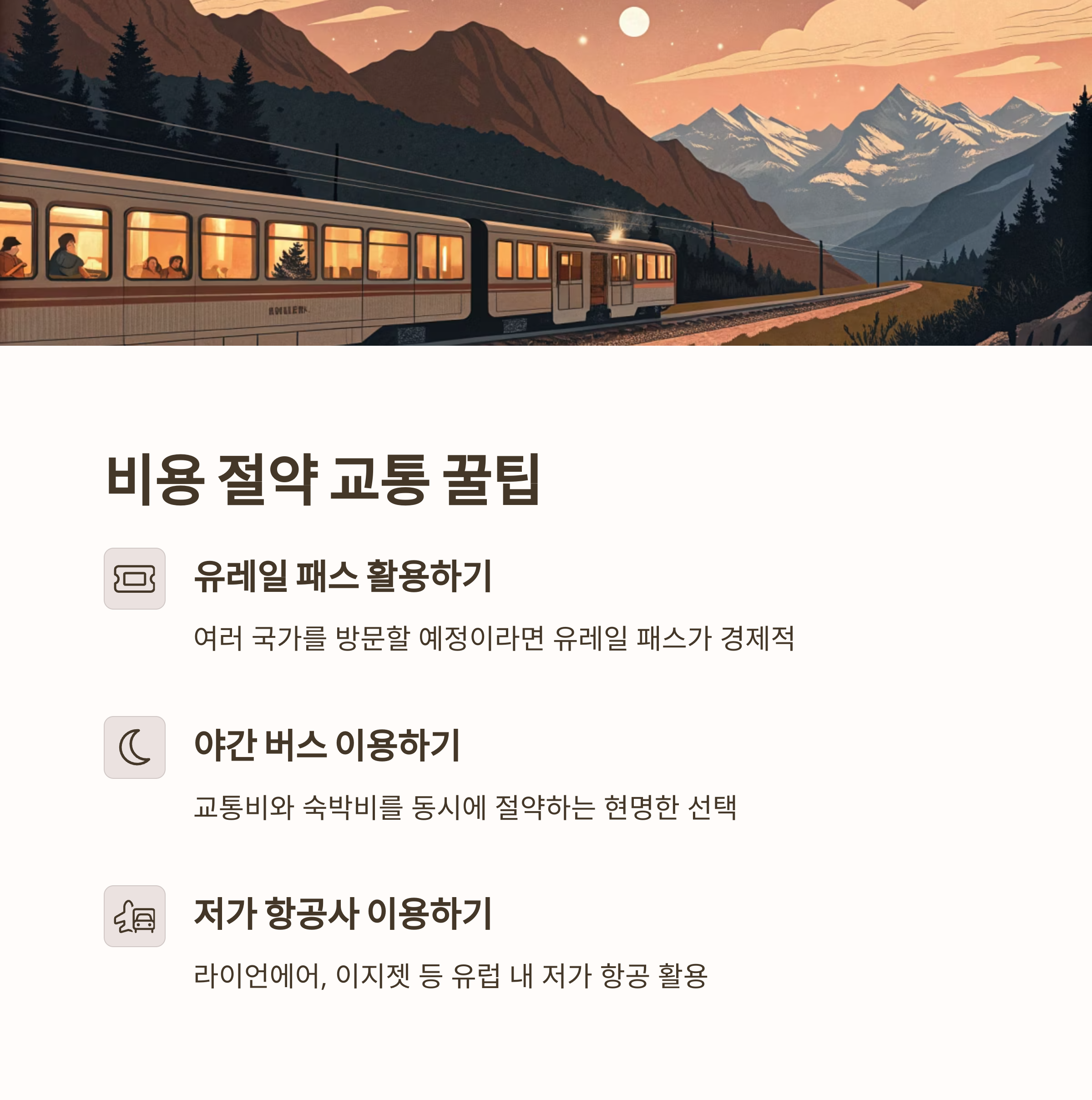 저가 항공이나 야간 이동을 활용하면 여행 비용이 절감됩니다.